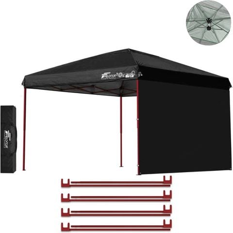 FIELDOOR ワンタッチタープテント 3m (標準:ブラック/スチール/強化版サイドフレーム/4点脚ロック/強化サポート/サイドシート1枚付) テント タープ ワンタッチテント ワンタッチタープ UV加工 撥水 ベンチレーション 日よけ キャンプ 送料無料