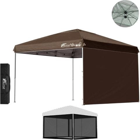 FIELDOOR ワンタッチタープテント 3m (標準:ダークブラウン/スチール/強化版サイドフレーム/4点脚ロック/バグガード/サイドシート1枚付) テント タープ ワンタッチテント ワンタッチタープ UV加工 撥水 ベンチレーション 日よけ キャンプ 送料無料