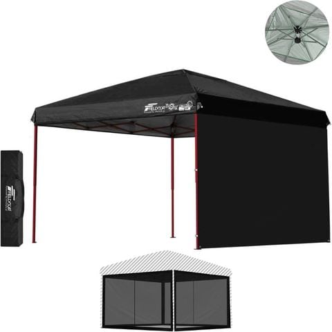 FIELDOOR ワンタッチタープテント 3m (標準:ブラック/スチール/強化版サイドフレーム/4点脚ロック/バグガード/サイドシート1枚付) テント タープ ワンタッチテント ワンタッチタープ UV加工 撥水 ベンチレーション 日よけ キャンプ 送料無料