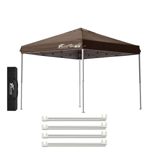 FIELDOOR ワンタッチタープテント 2.5m (標準:ダークブラウン/スチール/4点脚ロック/強化サポート) テント タープ ワンタッチ ワンタッチテント ワンタッチタープ UV加工 撥水 ベンチレーション 収納バッグ付 日よけ キャンプ バーベキュー 送料無料