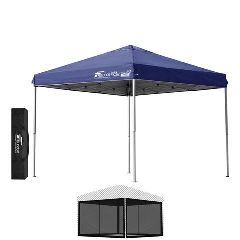 FIELDOOR ワンタッチタープテント 2.5m (標準:ブルー/スチール/4点脚ロック/バグガード) テント タープ ワンタッチ ワンタッチテント ワンタッチタープ UV加工 撥水 ベンチレーション 収納バッグ付 日よけ キャンプ バーベキュー 送料無料
