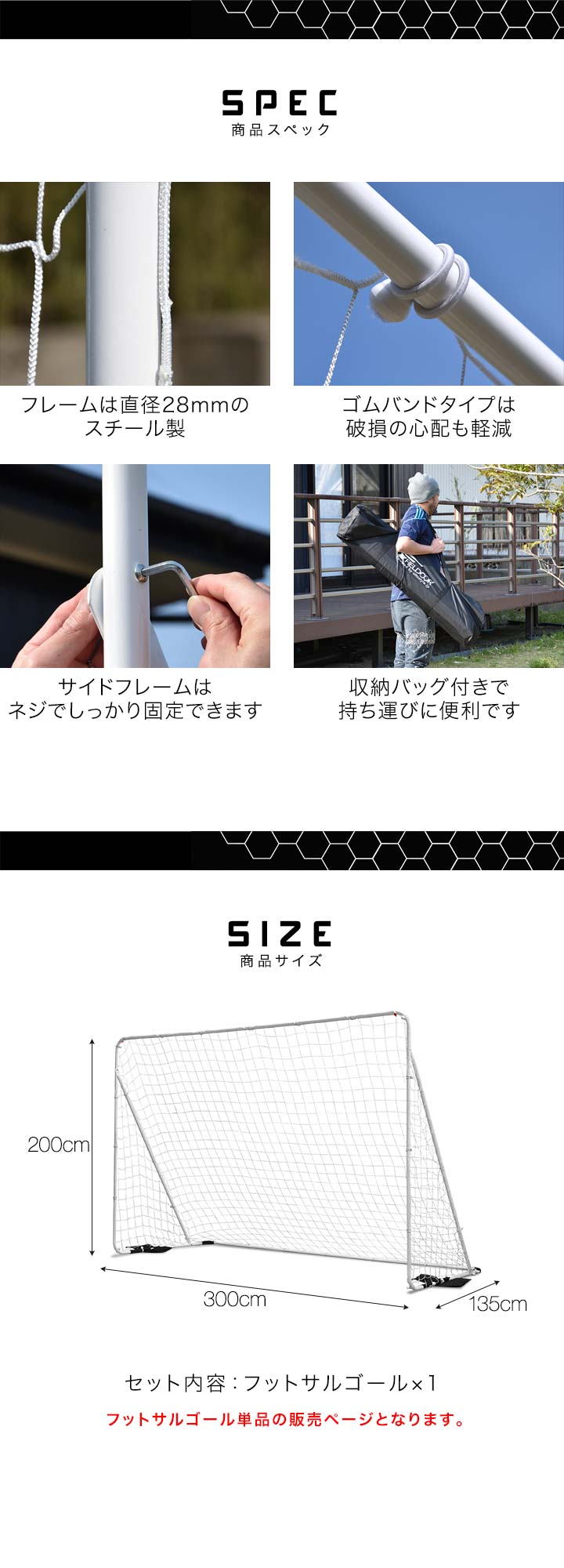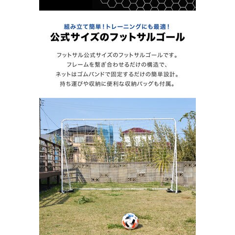 FIELDOOR フットサルゴール 3m×2m (単品1台) 公式サイズ 組み立て式 屋内 屋外兼用 体育館 保護クッション/ウエイトバッグ/収納バッグ付き 練習用ネット ゴールネット サッカーゴール フットサル ゴール サッカー ミニサッカー トレーニング 送料無料