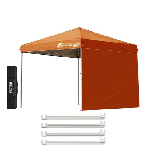 FIELDOOR ワンタッチタープテント 2.5m (標準:オレンジ/スチール/4点脚ロック/強化サポート/サイドシート1枚付) テント タープ ワンタッチ ワンタッチテント ワンタッチタープ UV加工 撥水 ベンチレーション 収納バッグ付 日よけ キャンプ バーベキュー 送料無料