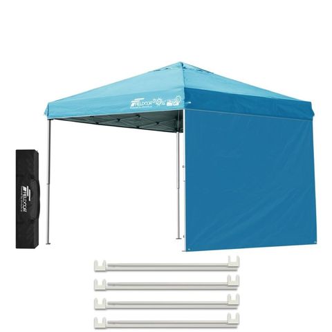 FIELDOOR ワンタッチタープテント 2.5m (標準:ターコイズ/スチール/4点脚ロック/強化サポート/サイドシート1枚付) テント タープ ワンタッチ ワンタッチテント ワンタッチタープ UV加工 撥水 ベンチレーション 収納バッグ付 日よけ キャンプ バーベキュー 送料無料