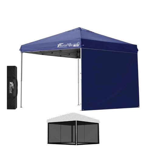 FIELDOOR ワンタッチタープテント 2.5m (標準:ブルー/スチール/4点脚ロック/バグガード/サイドシート1枚付) テント タープ ワンタッチ ワンタッチテント ワンタッチタープ UV加工 撥水 ベンチレーション 収納バッグ付 日よけ キャンプ バーベキュー 送料無料