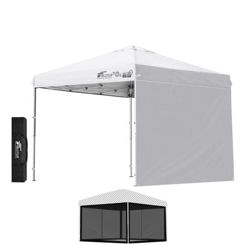 FIELDOOR ワンタッチタープテント 2.5m (標準:ホワイト/スチール/4点脚ロック/バグガード/サイドシート1枚付) テント タープ ワンタッチ ワンタッチテント ワンタッチタープ UV加工 撥水 ベンチレーション 収納バッグ付 日よけ キャンプ バーベキュー 送料無料