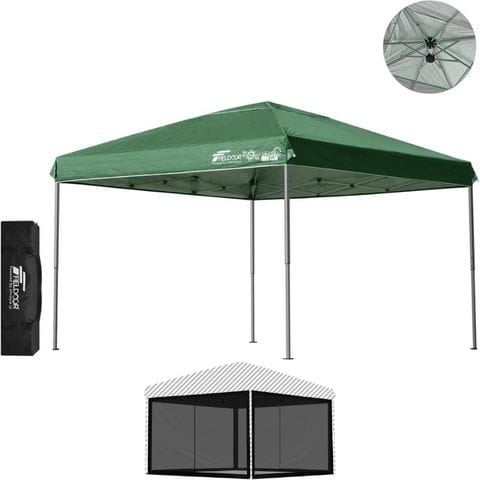 FIELDOOR ワンタッチタープテント 3m (標準:グリーン/アルミ/強化版サイドフレーム/4点脚ロック/バグガード) 軽量 テント タープ ワンタッチ ワンタッチテント ワンタッチタープ UV加工 撥水 ベンチレーション 収納バッグ付 日よけ キャンプ 送料無料