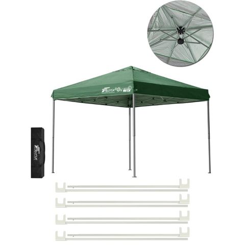 FIELDOOR ワンタッチタープテント 2.5m (標準:グリーン/アルミ/強化版サイドフレーム/4点脚ロック/フレーム強化サポート) 軽量 テント タープ ワンタッチ ワンタッチテント ワンタッチタープ UV加工 撥水 ベンチレーション 収納バッグ付 日よけ キャンプ 送料無料
