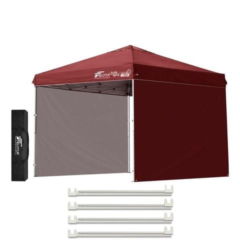 FIELDOOR ワンタッチタープテント 2.5m (標準:ボルドー/スチール/4点脚ロック/強化サポート/サイドシート2枚付) テント タープ ワンタッチ ワンタッチテント ワンタッチタープ UV加工 撥水 ベンチレーション 収納バッグ付 日よけ キャンプ バーベキュー 送料無料
