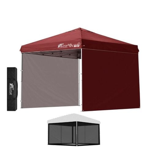 FIELDOOR ワンタッチタープテント 2.5m (標準:ボルドー/スチール/4点脚ロック/バグガード/サイドシート2枚付) テント タープ ワンタッチ ワンタッチテント ワンタッチタープ UV加工 撥水 ベンチレーション 収納バッグ付 日よけ キャンプ バーベキュー 送料無料