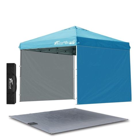 FIELDOOR ワンタッチタープテント 2.5m (標準:ターコイズ/スチール/4点脚ロック/グランドシート/サイドシート2枚付) テント タープ ワンタッチ ワンタッチテント ワンタッチタープ UV加工 撥水 ベンチレーション 収納バッグ付 日よけ キャンプ バーベキュー 送料無料