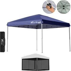 FIELDOOR ワンタッチタープテント 3m (標準:ブルー/スチール/強化版サイドフレーム/センターロック/タープ本体のみ) テント タープ ワンタッチ ワンタッチテント ワンタッチタープ UV加工 撥水 ベンチレーション 収納バッグ付 日よけ キャンプ 送料無料
