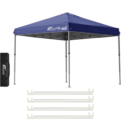 FIELDOOR ワンタッチタープテント 2.5m (標準:ブルー/アルミ/4点脚ロック/フレーム強化サポート) 軽量 テント タープ ワンタッチ ワンタッチテント ワンタッチタープ UV加工 撥水 ベンチレーション 収納バッグ付 日よけ キャンプ バーベキュー 送料無料