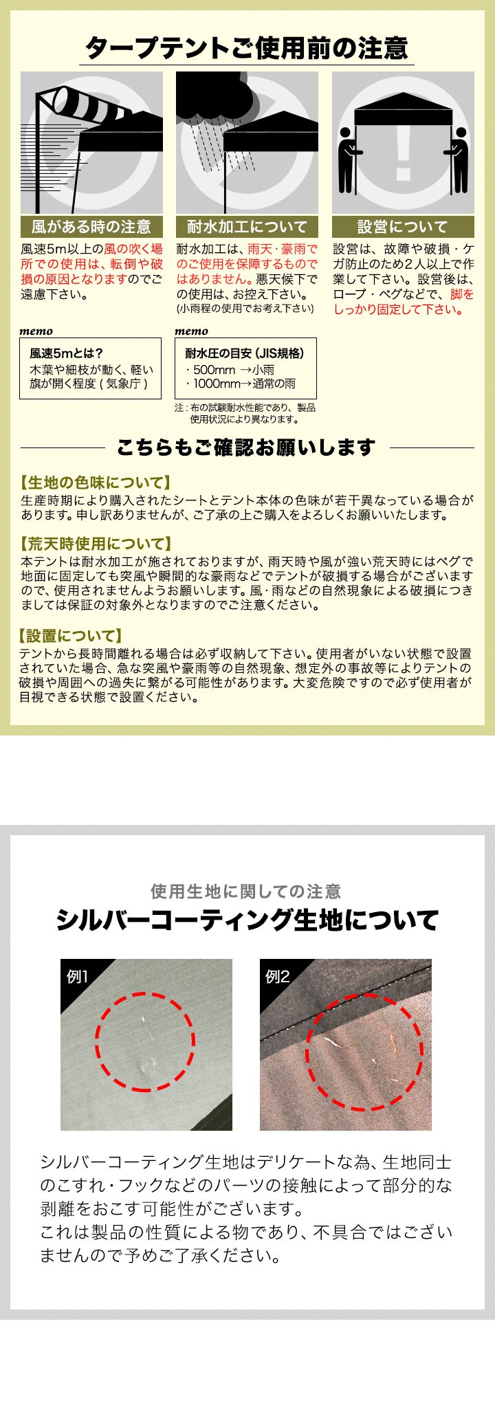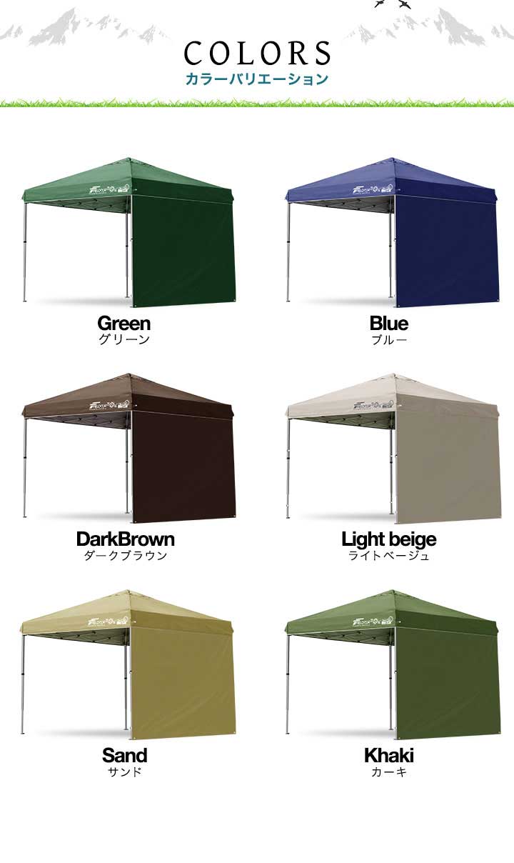 | 付属品: ・専用サイドシート(1枚) ・ロープ ・ペグ ・収納バッグ ・取扱説明書 |