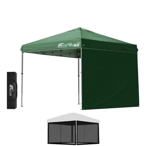 FIELDOOR ワンタッチタープテント 2.5m (標準:グリーン/アルミ/4点脚ロック/バグガードスクリーン/サイドシート1枚付) 軽量 テント タープ ワンタッチ ワンタッチテント ワンタッチタープ UV加工 撥水 ベンチレーション 収納バッグ付 日よけ キャンプ 送料無料