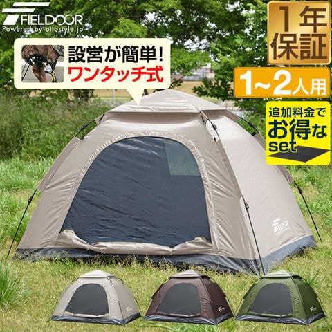 FIELDOOR テント ワンタッチ (カーキ/テント本体のみ) 一人用 2人用 ワンタッチテント 150cm×200cm 耐水 遮熱 UVカット スクエア テント 耐水圧 1,500mm以上 ドームテント キャンプテント キャンプ用品 アウトドア 簡易テント 軽量 コンパクト 送料無料