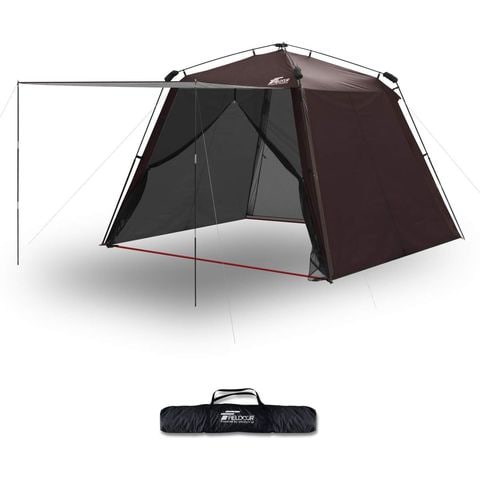 FIELDOOR テント スクリーンタープ (ダークブラウン:標準タイプ/日よけシート2枚付き) スクリーンテント ワンタッチ 幅285×奥行285cm 日よけ ドームテント タープテント タープ キャノピー ポール2本付き 虫よけ 蚊帳 メッシュ 大型 サンシェード 組み立て 送料無料