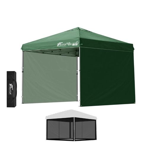 FIELDOOR ワンタッチタープテント 2.5m (標準:グリーン/アルミ/4点脚ロック/バグガードスクリーン/サイドシート2枚付) 軽量 テント タープ ワンタッチ ワンタッチテント ワンタッチタープ UV加工 撥水 ベンチレーション 収納バッグ付 日よけ キャンプ 送料無料