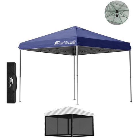 FIELDOOR ワンタッチタープテント 2.5m (標準:ブルー/スチール/強化版サイドフレーム/4点脚ロック/バグガード) テント タープ ワンタッチ ワンタッチテント ワンタッチタープ UV加工 撥水 ベンチレーション 収納バッグ付 日よけ キャンプ 送料無料