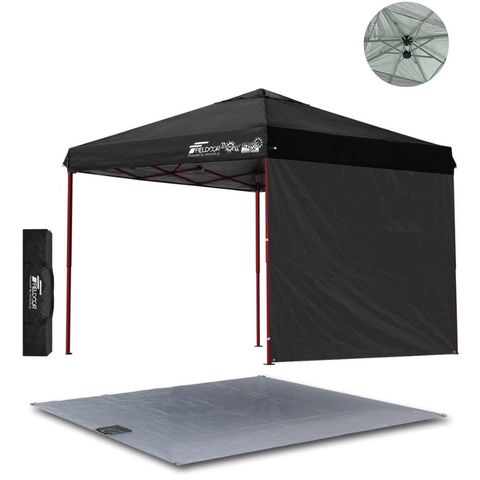 FIELDOOR ワンタッチタープテント 2.5m (標準:ブラック/スチール/強化版サイドフレーム/4点脚ロック/グランドシート/サイドシート1枚付) テント タープ ワンタッチテント ワンタッチタープ UV加工 撥水 ベンチレーション 日よけ キャンプ 送料無料