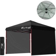 FIELDOOR ワンタッチタープテント 2.5m (標準:ブラック/スチール/強化版サイドフレーム/4点脚ロック/強化サポート/サイドシート2枚付) テント タープ ワンタッチテント ワンタッチタープ UV加工 撥水 ベンチレーション 日よけ キャンプ 送料無料
