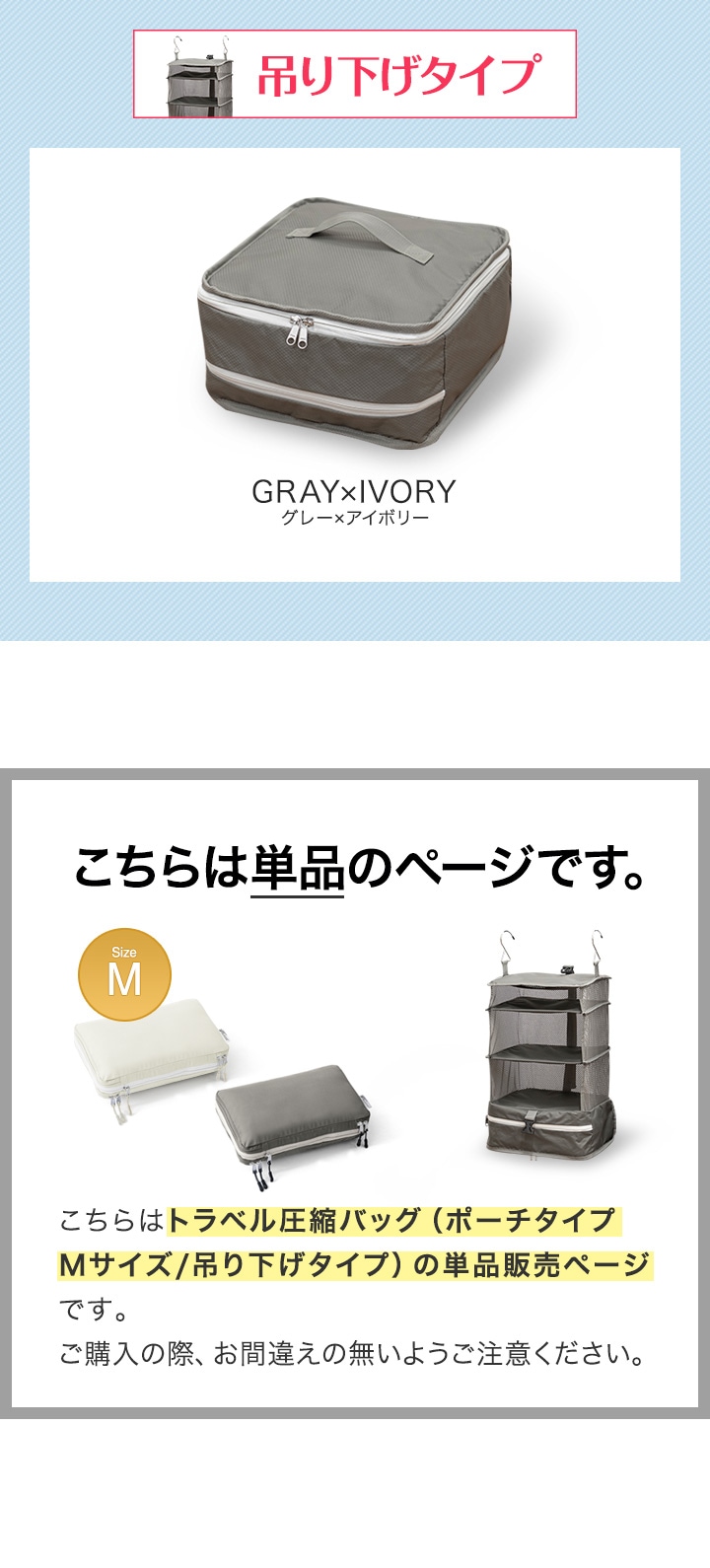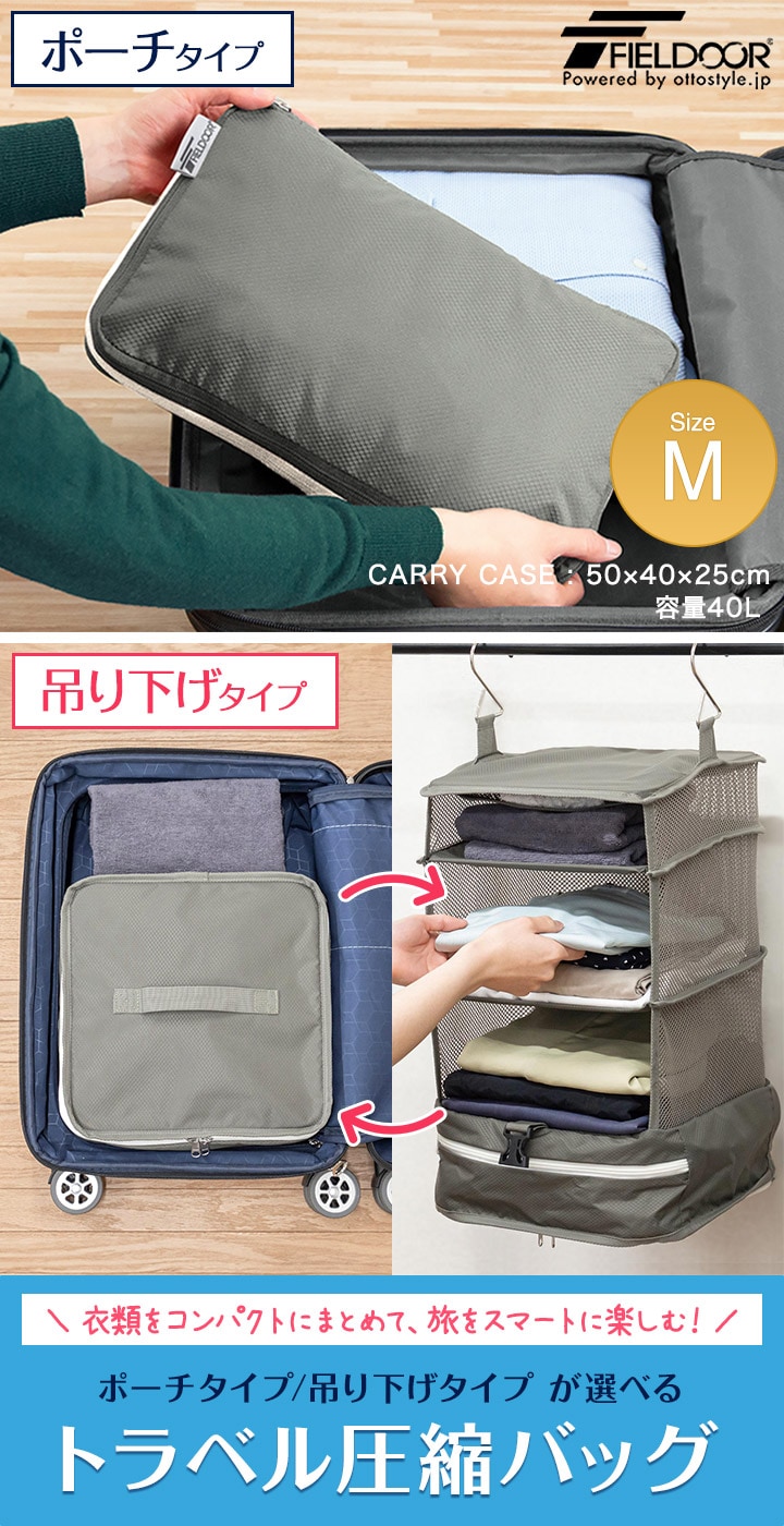 圧縮バッグ 旅行用 トラベル圧縮バッグ (グレー×アイボリー/吊り下げ型:31cm/単品) ポーチ 吊り下げ 圧縮ポーチ 圧縮パック 収納ポーチ 収納バッグ YKKファスナー 圧縮袋 衣類収納 仕分けケース バッグ スーツケース 整理 海外旅行 旅行グッズ FIELDOOR 送料無料