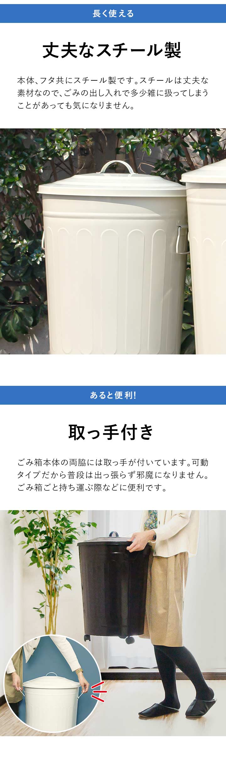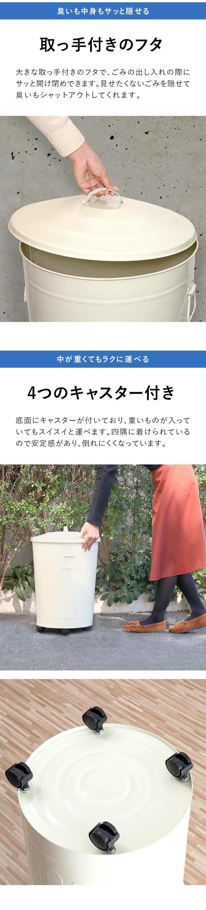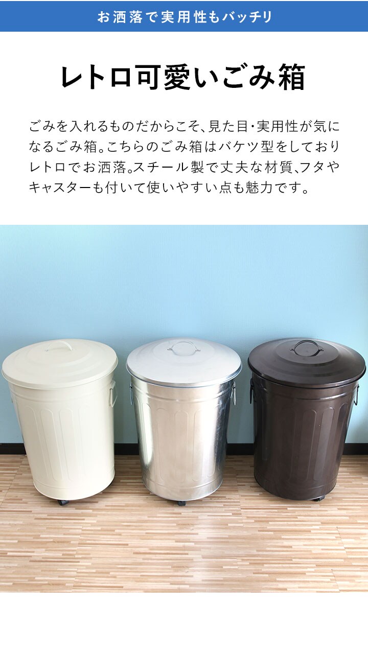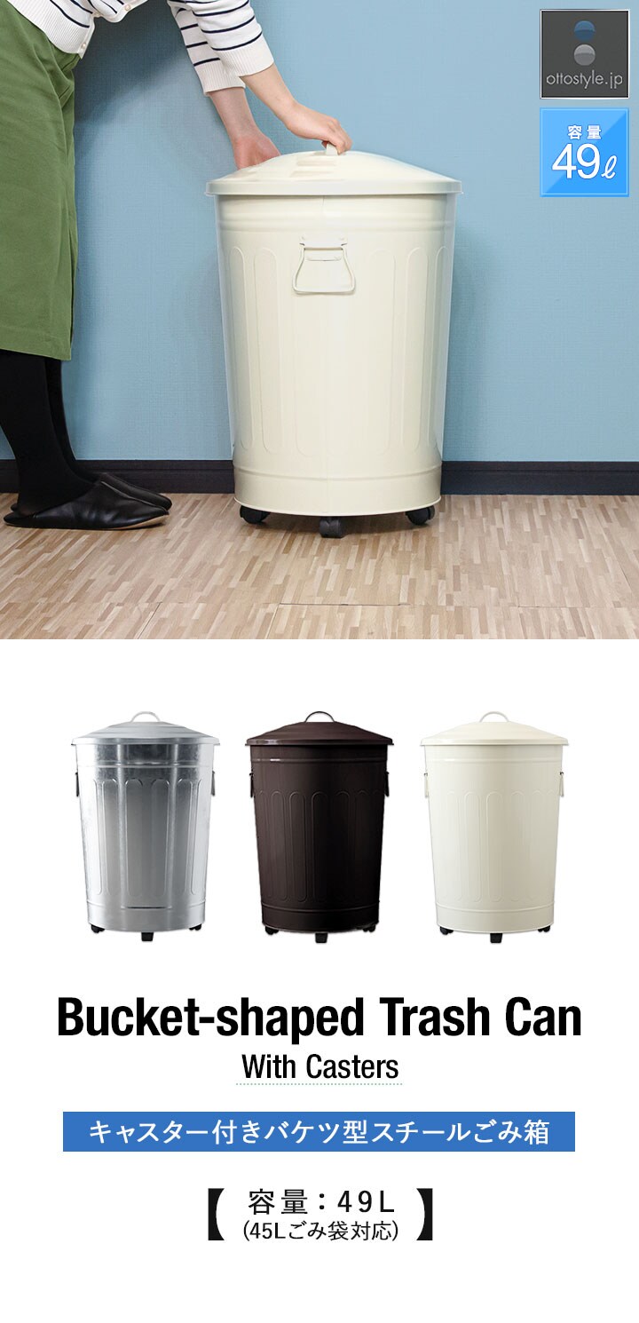 キャスター付き バケツ型ゴミ箱 49L (オフホワイト) フタつき 大型 ペール ダストボックス ごみ箱 くず箱 45Lゴミ袋対応 臭い防止 インテリア 送料無料