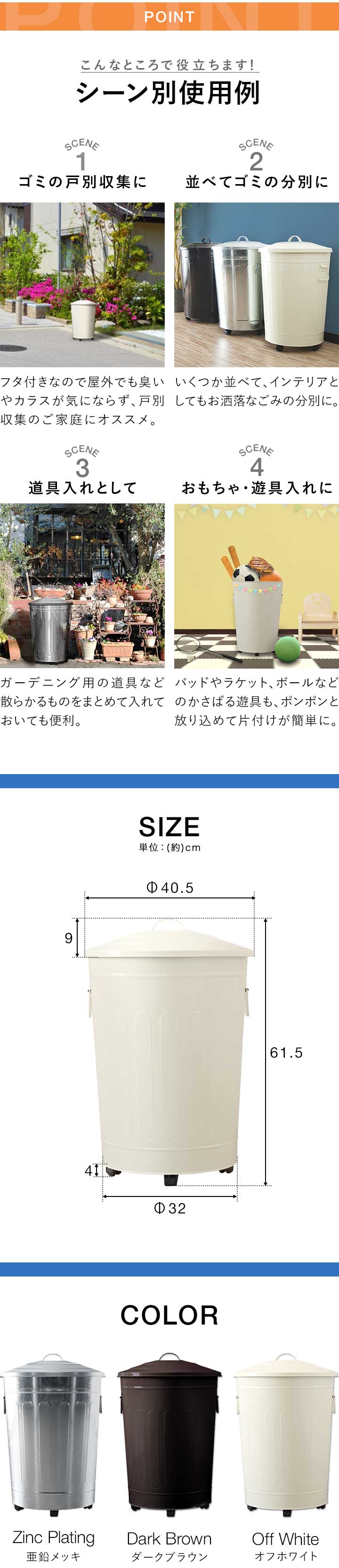 (約)最大Φ40.5cm×高さ61.5cm(キャスター、フタ含む)
