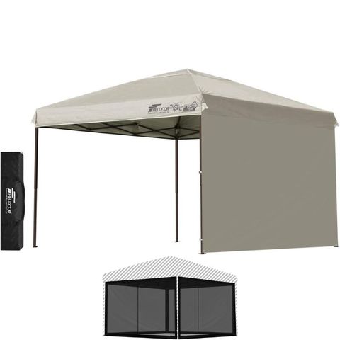 FIELDOOR ワンタッチタープテント 3m (標準:ライトベージュ/スチール/4点脚ロック/バグガード/サイドシート1枚付) テント タープ ワンタッチ ワンタッチテント ワンタッチタープ UV加工 撥水 ベンチレーション 収納バッグ付 日よけ キャンプ バーベキュー 送料無料