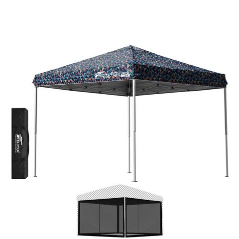 FIELDOOR ワンタッチタープテント 2.5m (標準:トライアングルネイビー/スチール/4点脚ロック/バグガード) テント タープ ワンタッチ ワンタッチテント ワンタッチタープ UV加工 撥水 ベンチレーション 収納バッグ付 日よけ キャンプ バーベキュー 送料無料