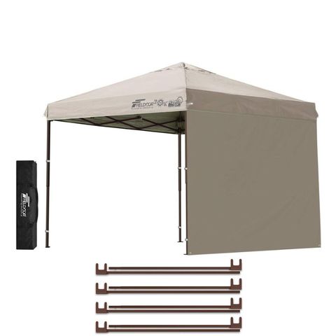 FIELDOOR ワンタッチタープテント 2.5m (標準:ライトベージュ/スチール/4点脚ロック/強化サポート/サイドシート1枚付) テント タープ ワンタッチ ワンタッチテント ワンタッチタープ UV加工 撥水 ベンチレーション 収納バッグ付 日よけ キャンプ バーベキュー 送料無料