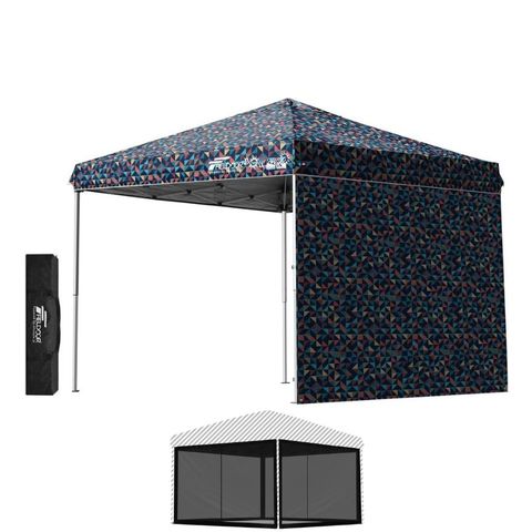 FIELDOOR ワンタッチタープテント 2.5m (標準:トライアングルネイビー/スチール/4点脚ロック/バグガード/サイドシート1枚付) テント タープ ワンタッチ ワンタッチテント ワンタッチタープ UV加工 撥水 ベンチレーション 収納バッグ付 日よけ キャンプ 送料無料
