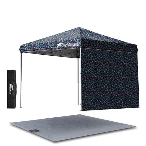 FIELDOOR ワンタッチタープテント 2.5m (標準:トライアングルネイビー/スチール/4点脚ロック/グランドシート/サイドシート1枚付) テント タープ ワンタッチ ワンタッチテント ワンタッチタープ UV加工 撥水 ベンチレーション 収納バッグ付 日よけ キャンプ 送料無料