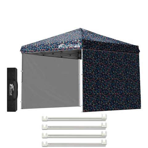 FIELDOOR ワンタッチタープテント 2.5m (標準:トライアングルネイビー/スチール/4点脚ロック/強化サポート/サイドシート2枚付) テント タープ ワンタッチ ワンタッチテント ワンタッチタープ UV加工 撥水 ベンチレーション 収納バッグ付 日よけ キャンプ 送料無料