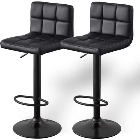 カウンターチェア (ブラック×ブラック脚/2脚セット) PUレザー 背もたれ付き ハイチェア ハイスツール バースツール 椅子 高さ調整 座面高 67cm~77cm おしゃれ モダン レトロ ヴィンテージ カフェ 喫茶店 チェア 回転式 昇降式 ガス圧 送料無料