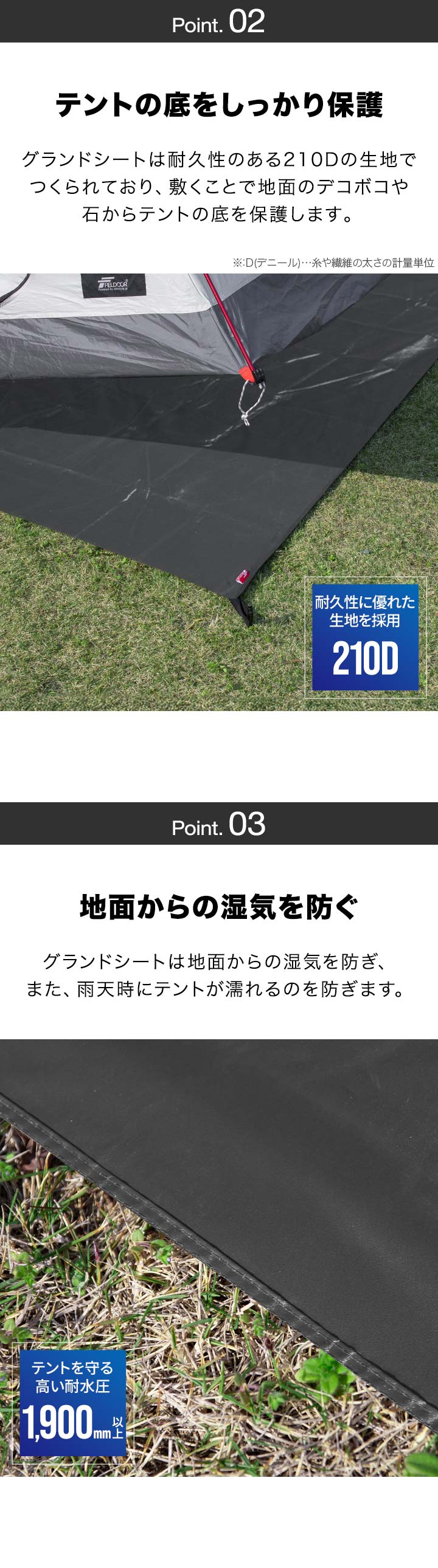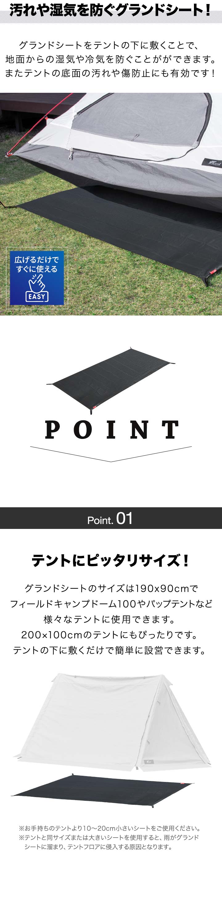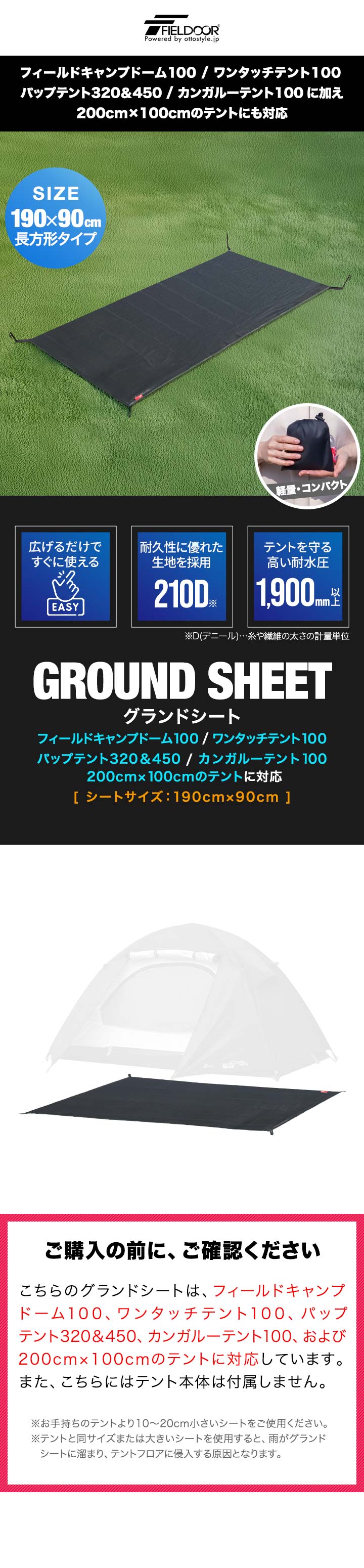 FIELDOOR グランドシート テントシート 190cm × 90cm 撥水加工 湿気防止 汚れ防止 キズ防止 テント用 レジャーシート テントマット おすすめ 軽量 コンパクト サイズ 190 90 長方形 必要 テントアクセサリー GROUND SHEET 送料無料