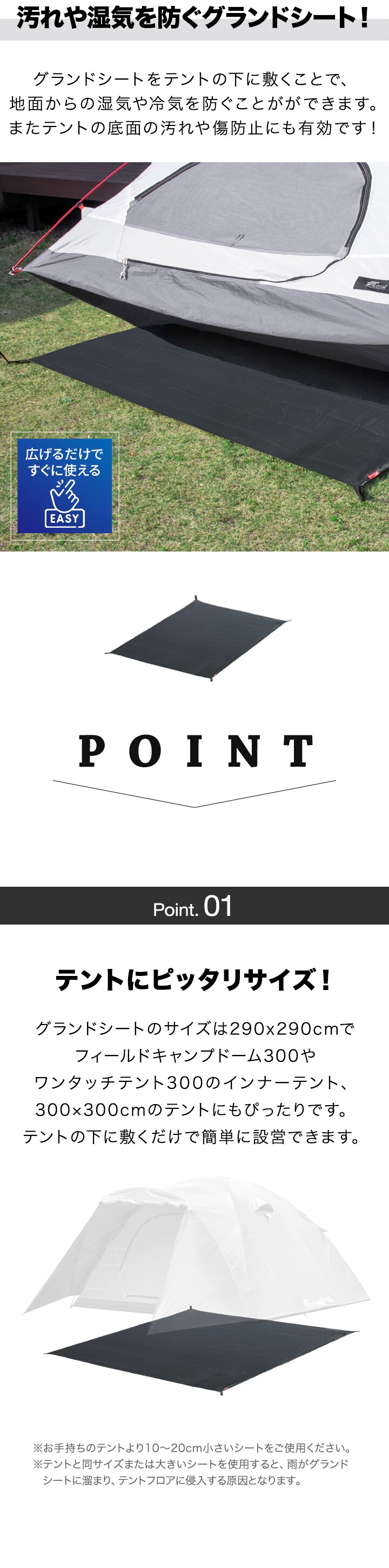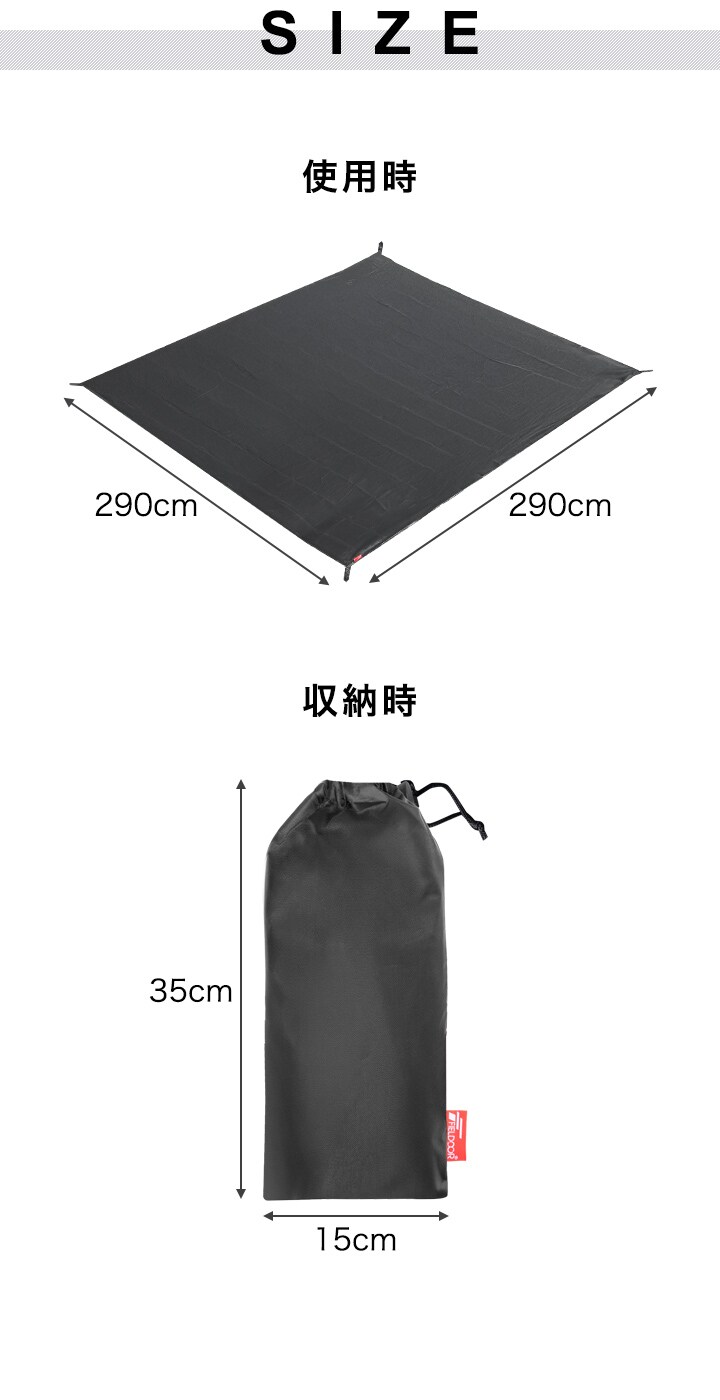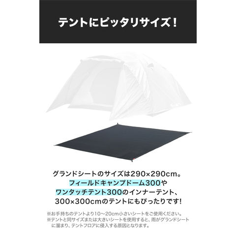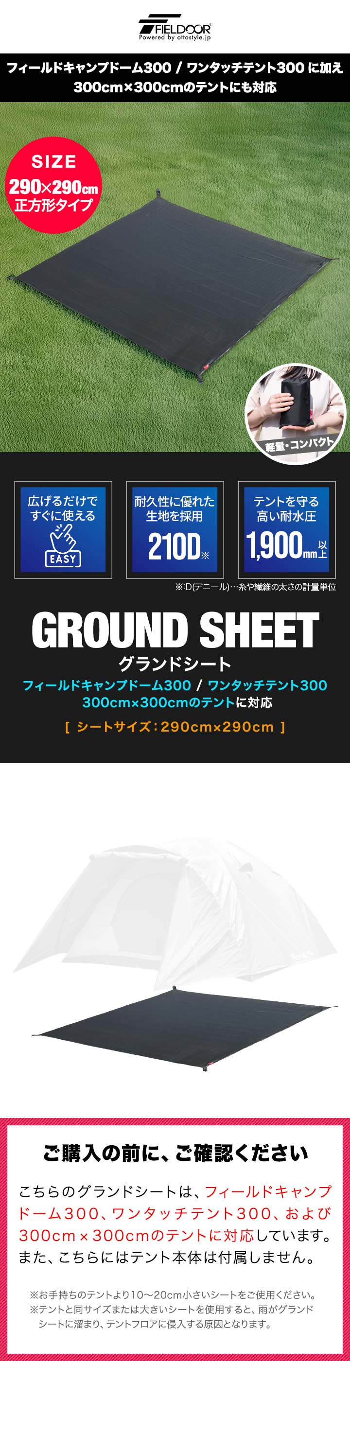 FIELDOOR グランドシート テントシート (ブラック) 290cm × 290cm 撥水加工 湿気防止 汚れ防止 キズ防止 テント用 レジャーシート テントマット おすすめ 軽量 コンパクト サイズ 290 正方形 必要 テントアクセサリー GROUND SHEET 送料無料