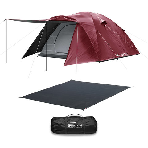FIELDOOR テント 4人用 (ボルドー/本体&専用グランドシートセット) ドームテント 大型 5人用 6人用 キャンプテント UVカット キャノピー ポール 付 耐水圧 1,500mm以上 フィールドキャンプドーム300 キャノピーテント フルクローズテント 組み立て式 送料無料