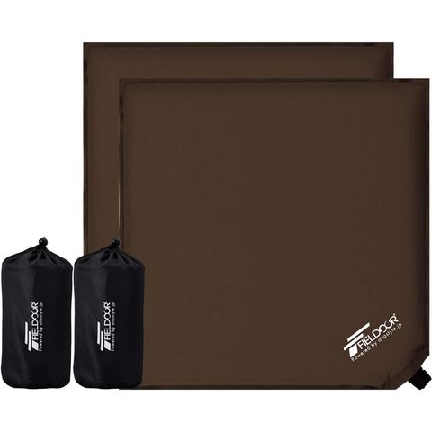 FIELDOOR エアークッション 45×45cm (ブラウン/2個セット) 厚さ 5cm 自動膨張 アウトドア クッション 座布団 枕 エアー 折りたたみ アウトドア ざぶとん 車中泊マット オフィス キャンプ コンサート 野外 フェス スポーツ観戦 運動会 防災 グッズ 送料無料