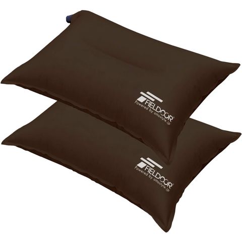 FIELDOOR エアークッション 44×30cm (ブラウン/お買得2個セット) 厚さ 10cm 自動膨張 インフレータブルピロー アウトドア クッション エアーピロー エアピロー 枕 空気枕 携帯枕 車中泊 キャンプ キャンプ用品 野外 防災 用品 グッズ 送料無料