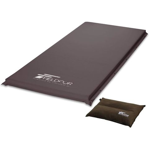 FIELDOOR 車中泊マット 10cm厚 (Mサイズ:幅90×長さ195cm/ブラウン/マット1枚、枕×1点つき) 段差解消 連結 自動膨張 高密度ウレタン インフレータブル キャンプマット エアーマット エアマット エアーベッド エアベッド おすすめ 簡単 アウトドア 寝具 防災 送料無料