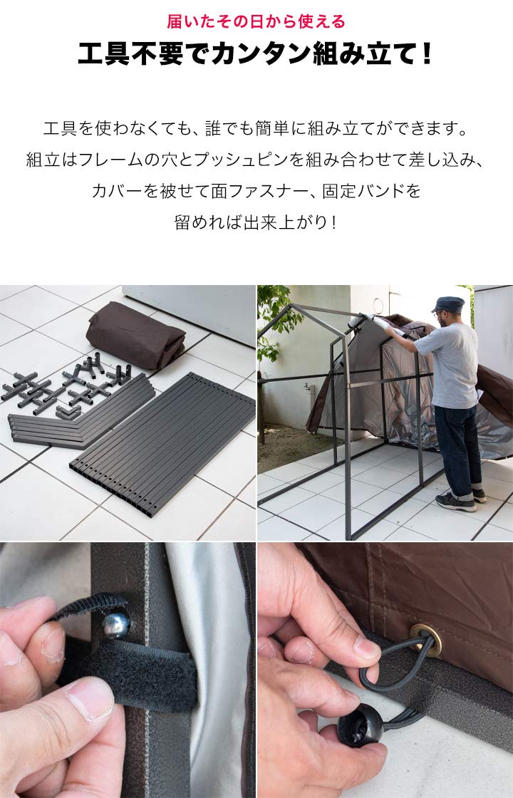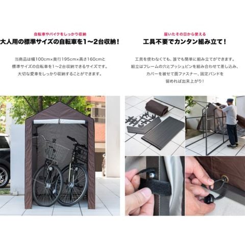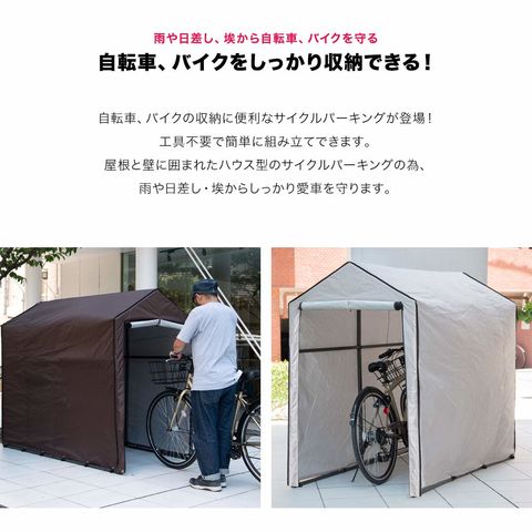 自転車置き場 1台~2台用 (ダークブラウン) 幅100cm×195cm サイクルパーキング 自転車収納 屋外保管 盗難 雨よけ 雨除け 駐輪場 自転車 バイク 送料無料
