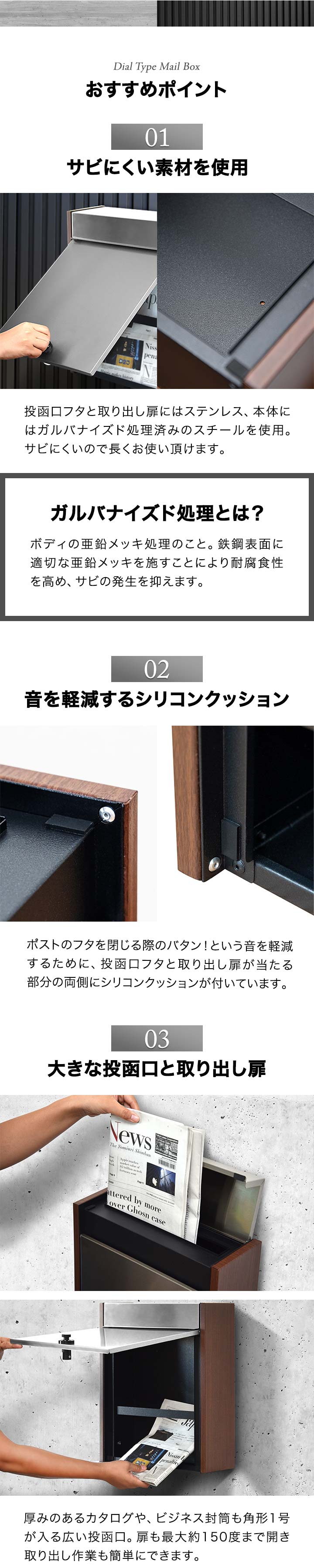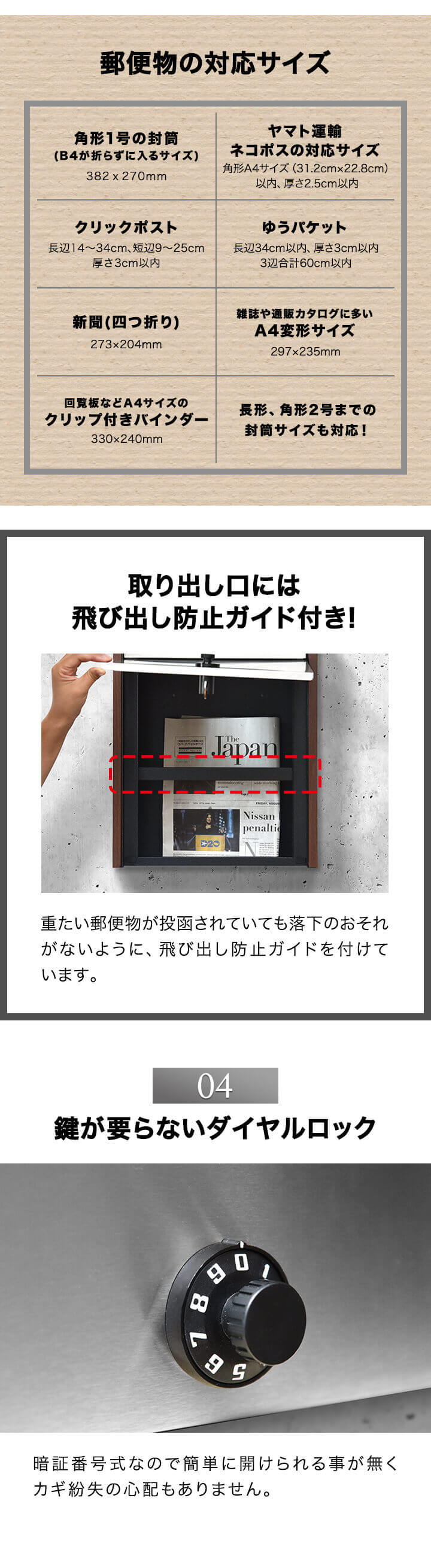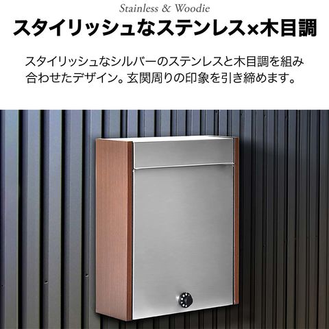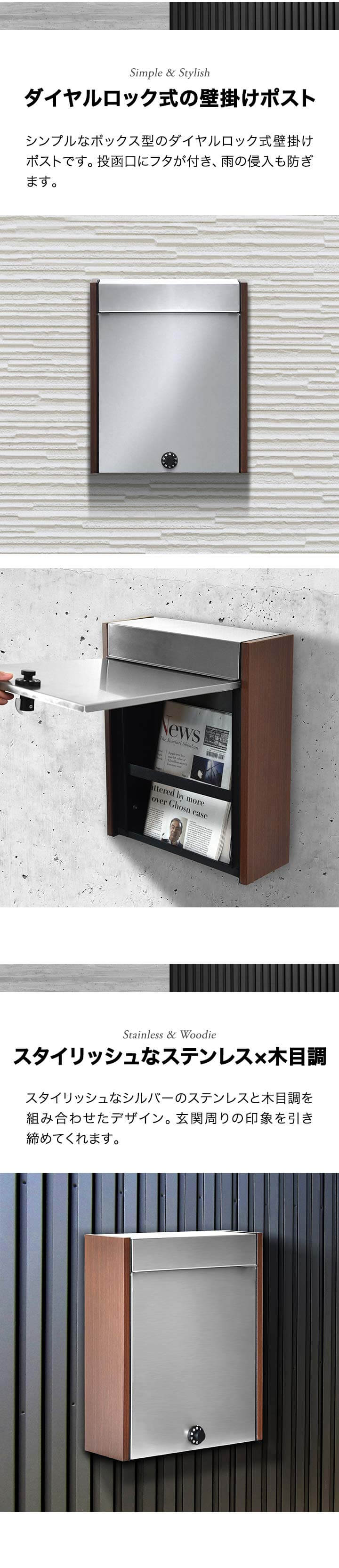 ポスト 郵便ポスト 郵便受け ステンレス 木目調 ダイヤル式 鍵付き 角型 壁付け 壁掛け A4サイズ 対応 ダイヤルロック ダイヤル錠 セキュリティ シンプル おしゃれ ポスト メールボックス MailBox 大型 新聞 雑誌 封筒 送料無料