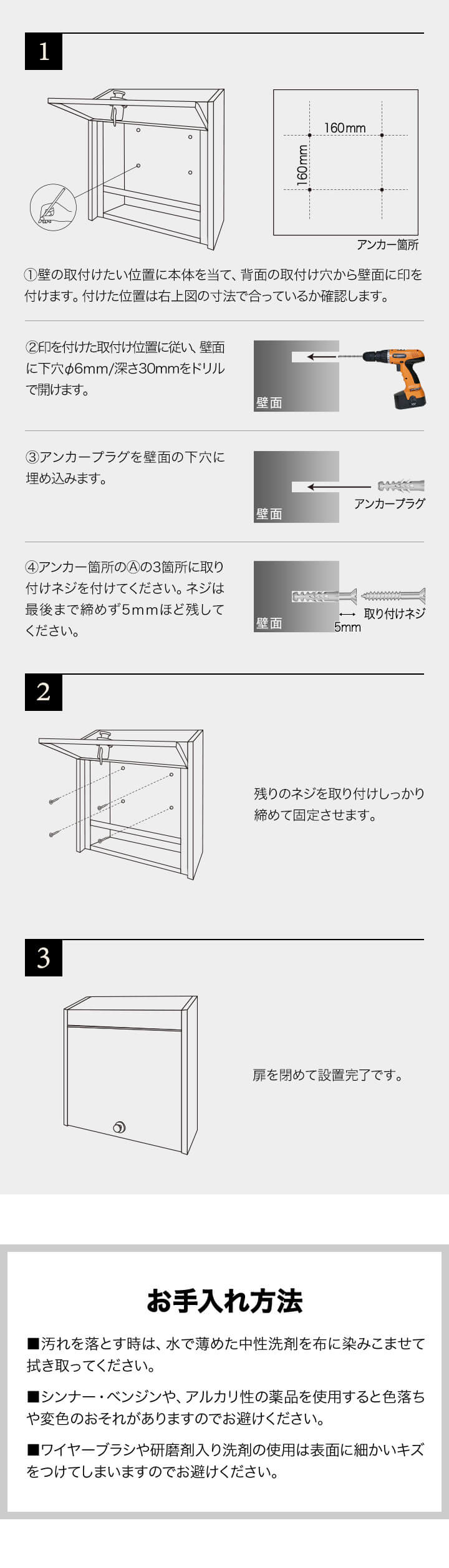 | 付属品: ・取り付けネジ×4 ・アンカープラグ×4 |
