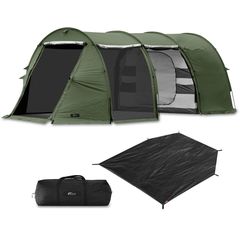 FIELDOOR テント 大型 (カーキ/Dセット) ドームテント 620cm×260cm 2ルームテント 4人用 6人用 8人用 トンネルテント 620 耐水 遮熱 UVカット シェルター キャンプテント メッシュ ツールームテント インナーテント付き 前室 日よけ キャンプ 送料無料
