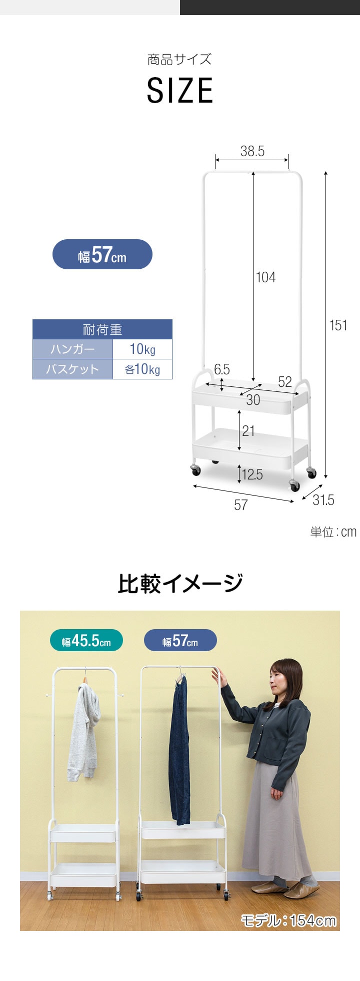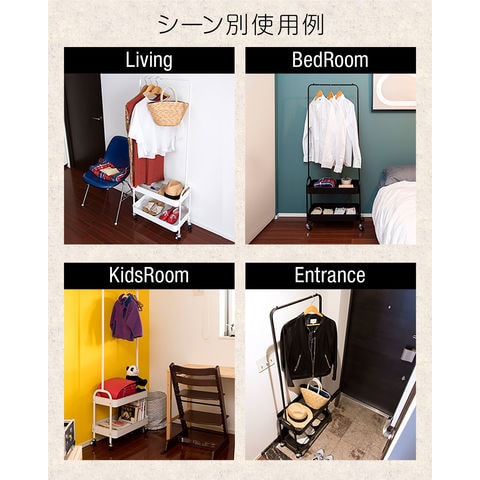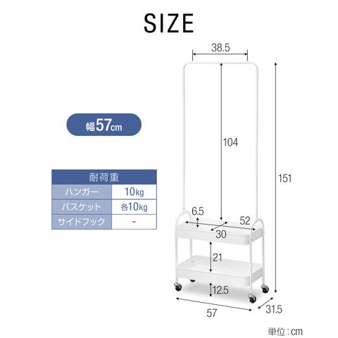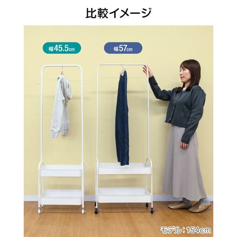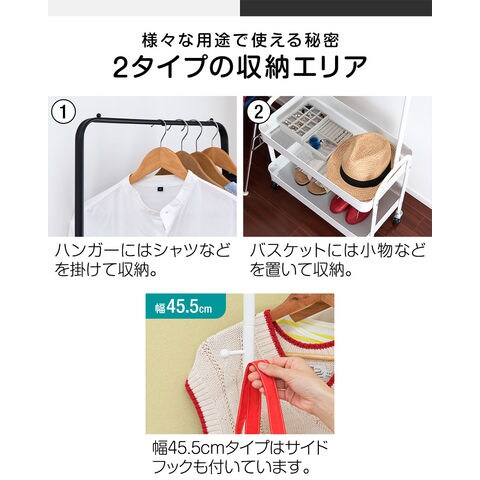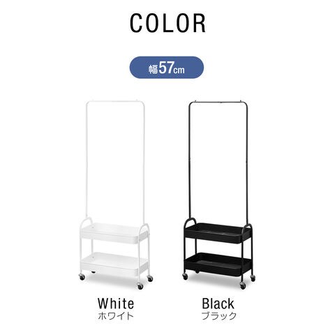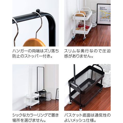 ハンガーラック スリム 2段 (ブラック/幅57cmタイプ) 棚付き キャスター付き コートハンガー ワゴン カゴ付き 省スペース 衣類収納 収納付き スチール 頑丈 寝室 子供部屋 玄関 廊下 リビング クローゼット パイプハンガー インテリア 子供部屋 北欧 おしゃれ 送料無料