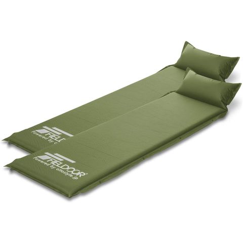 FIELDOOR 車中泊マット 5cm厚 枕一体型 190cm 幅60cm (Sサイズ/カーキ/2枚セット) 段差解消 連結 自動膨張 高密度ウレタン インフレータブルマット キャンピングマット インフレーター キャンプ 車中泊 マット エアーマット ごろ寝 アウトドア 寝具 防災 送料無料
