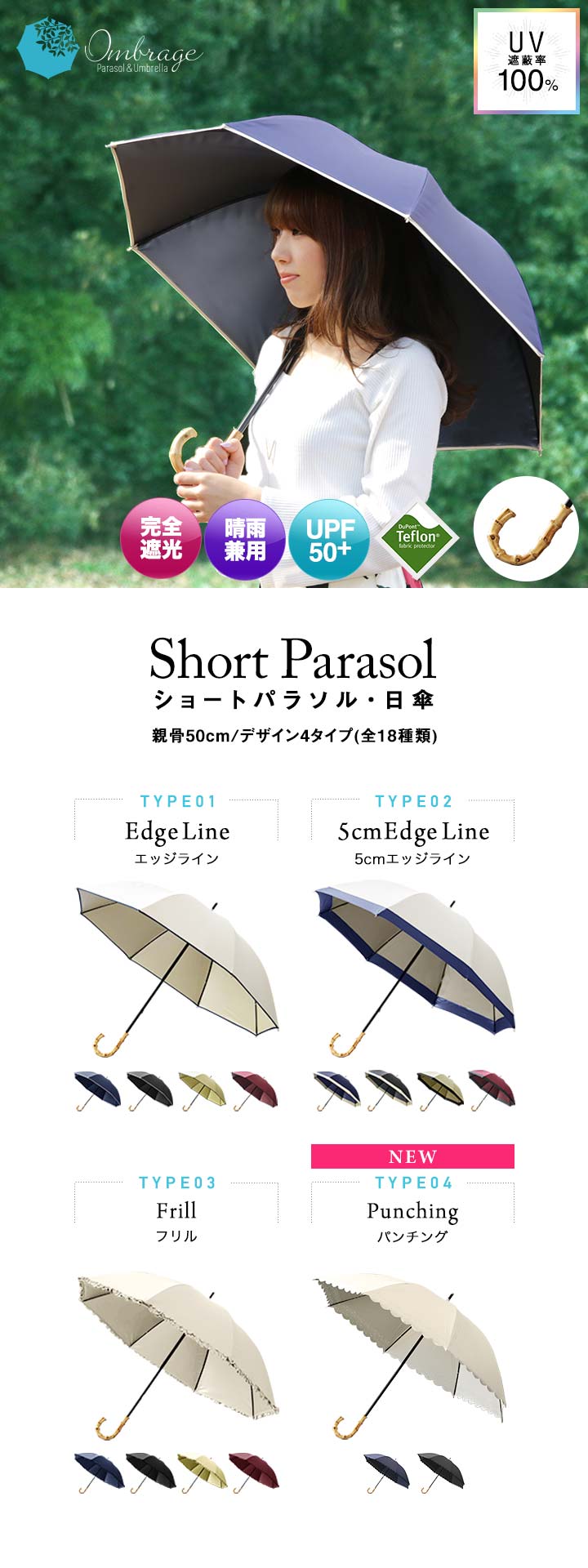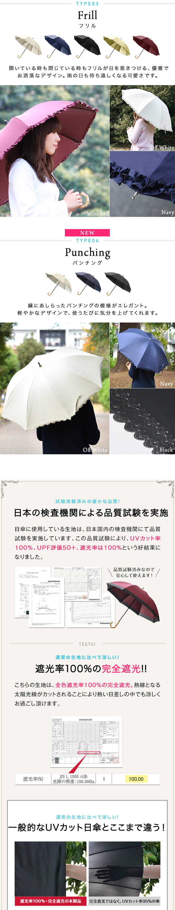 Ombrage 日傘 完全遮光 (パンチング/ブラック) 軽量 親骨50cm UVカット100% 遮光 遮熱 遮蔽 100% 晴雨兼用 UPF50+ 超撥水 傘 雨具 紫外線対策 シンプル おしゃれ フリル かさ カサ 無地 男性 女性 婦人 メンズ レディース 熱中症対策 送料無料