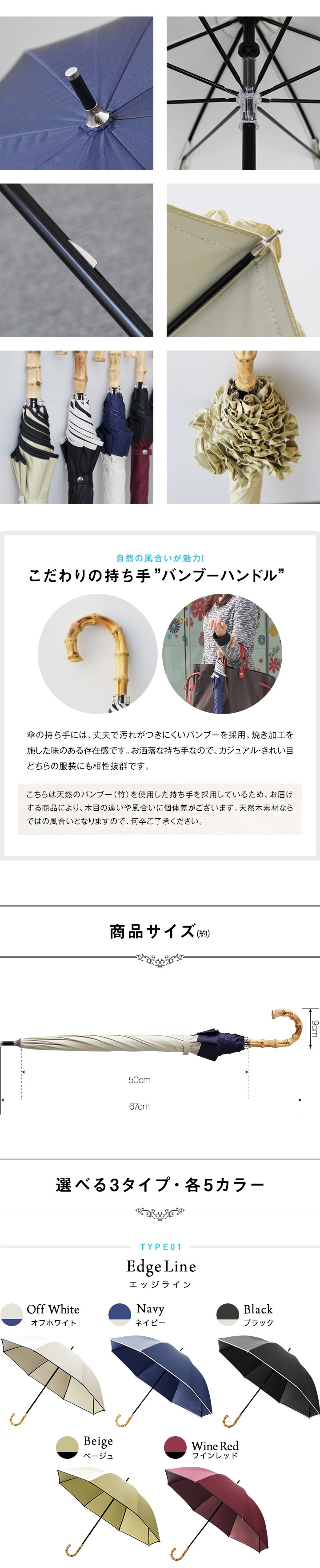 | サイズ: 親 骨 : (約)50cm 収納時 : (約)長さ67cm 使用時 : (約)直径84cm |