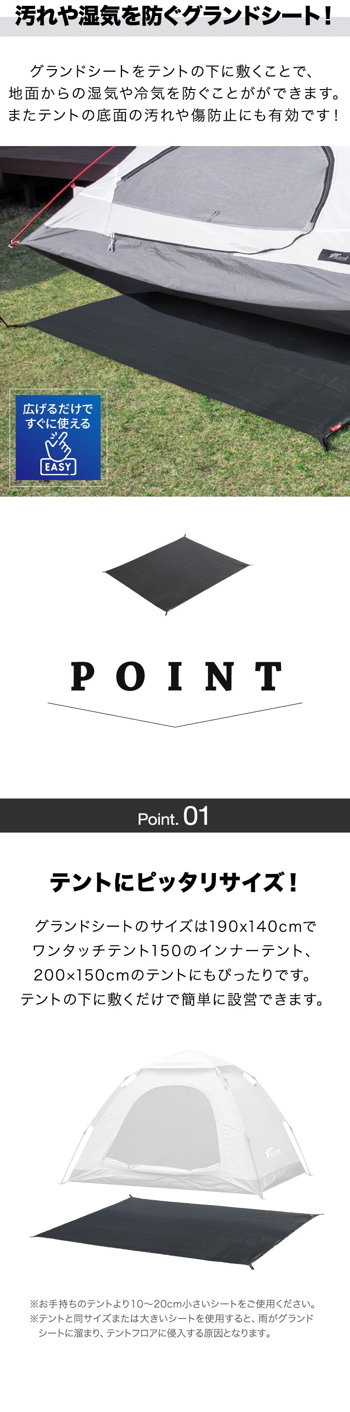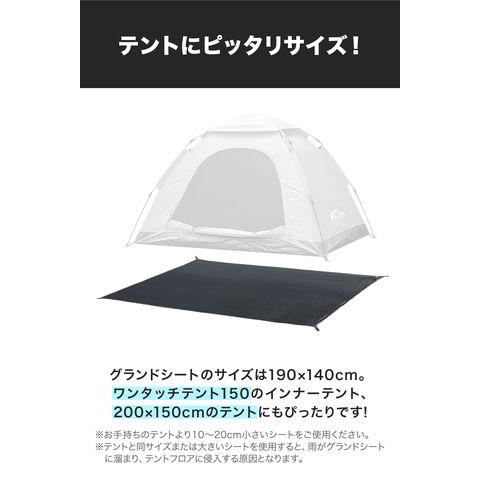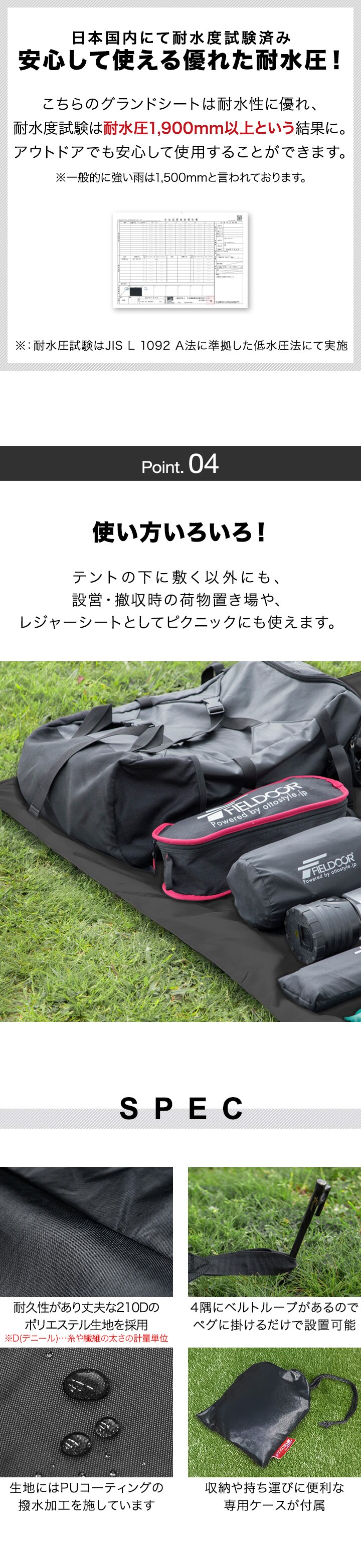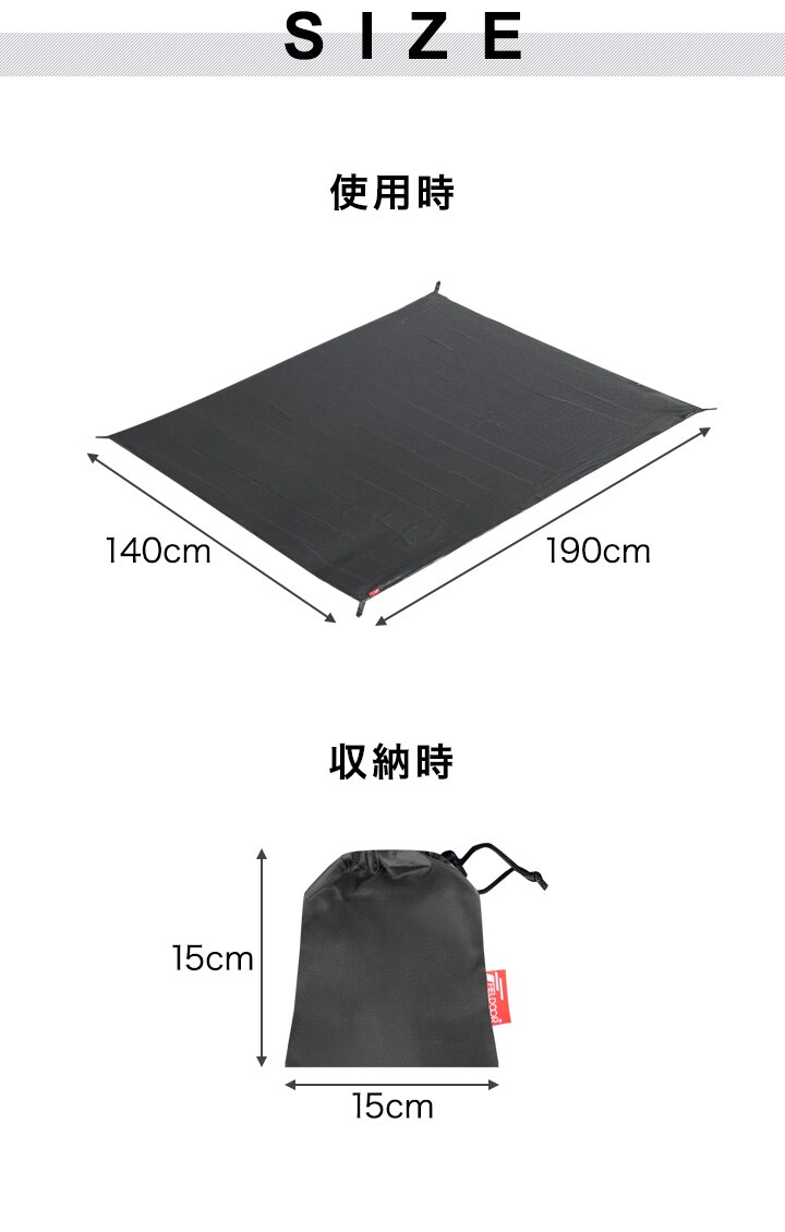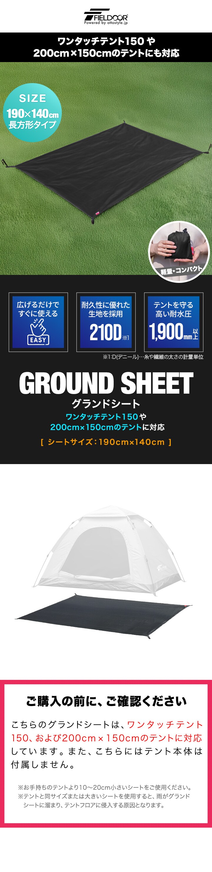 FIELDOOR グランドシート テントシート 190cm × 140cm 撥水加工 湿気防止 汚れ防止 キズ防止 テント用 レジャーシート テントマット おすすめ 軽量 コンパクト サイズ 190 長方形 必要 アウトドアギア テントアクセサリー 送料無料